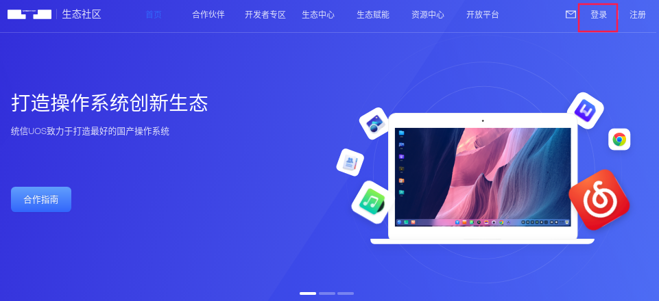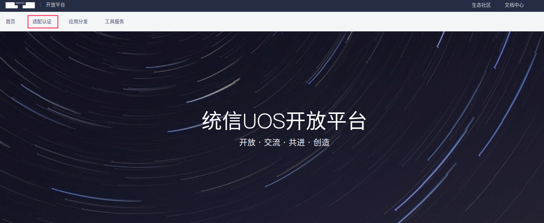 1、根据业务调整,同时提高认证便捷度、避免多次认证的情况,我们现将适配认证、开发者认证、OEM认证平台整合为“统一认证平台”,此后认证一次将可同时使用以上三个板块服务。首先,进入统信UOS生态社区网址[http://www.chinauos.com/] ,进入首页后点击登录。