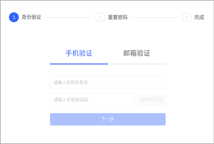 如果忘记了密码,在登录页面单击【忘记密码】,可以通过手机验证或邮箱验证找回密码,如下图示。