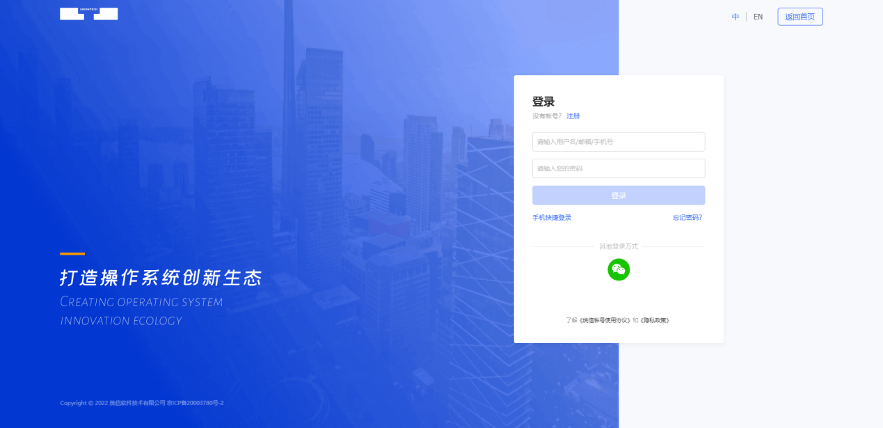 若您的微信已绑定统信帐号,即可直接通过微信扫码进行快捷登录。