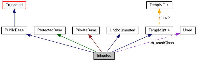 红色边框的矩形 表示该结构体或类的关系没有被完全显示.如果生成的图不能调整到制定的尺寸,有一些关系就会被截断而不显示出来.